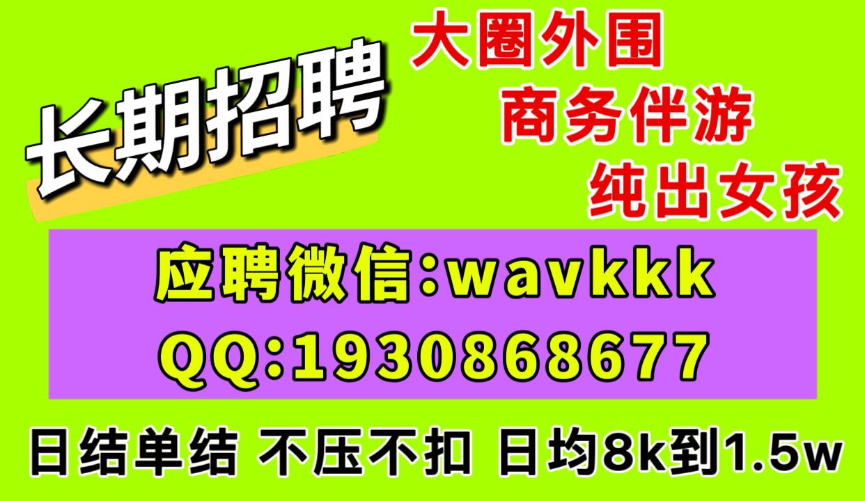 全国高端大圈外围伴游招聘网微信 wavkkk 一:【外-围-商务-伴-游-模特】招聘限女性《月薪10-30万》 1:年龄要求:17岁-30岁之间,身高 160-163- 1 6 5 cm以上。 2:性别要求:女、形象漂亮,一